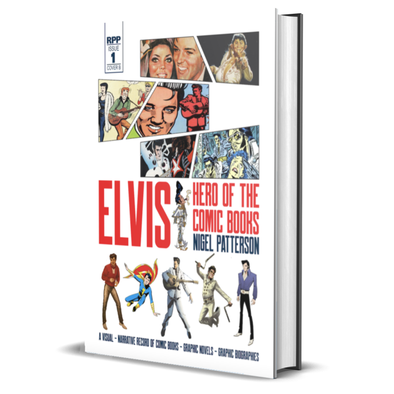 It’s thus fitting that he would eventually be depicted in many comic books, and later in graphic novels, either as himself or as a fictionalized fantasy-Elvis. This fascinating and well-illustrated volume docments those depictions of Presley in “sequential art” from 1955-2024.