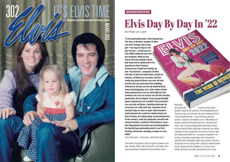 Eric van Rooij, President of the Dutch It's Elvis Time fanclub: He did it again. Kees Mouwen has once again delivered a great part in the series Elvis Day by Day. A must have for every (serious or beginning) Elvis collector. With super interesting background articles and lots and lots of information.